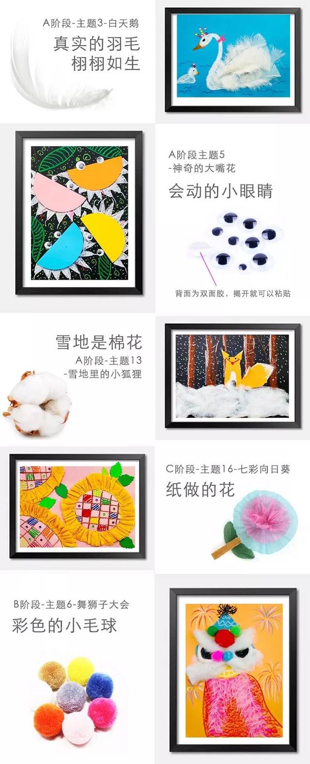 绘画的起点是,手指精细化动作锻炼。本套课程根据不同年龄段孩子的发育特点融合了撕、贴、揉、剪、画等手指精细化动作训练的内容,通过这些有针对性的训练,孩子的手脑协调能力以及手指精细化动作能力会有显著提升。