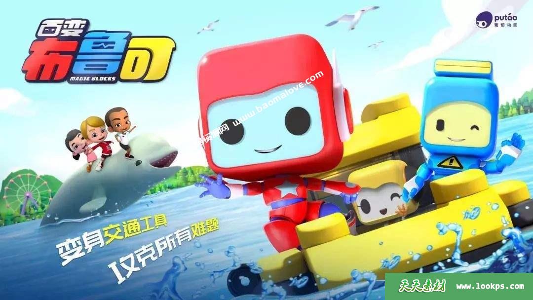 《百变布鲁可》是上海葡乐文化传播有限公司(葡萄动画)专为2-6岁儿童打造的3D动画作品。在宁静的葡乐镇住着三个百变积木机器人——布布、鲁鲁、可可,他们由神奇的派博士“创造”,拥有着特别的力量,可以变身各种交通工具,帮助人们解决任何难题。作品旨在让小朋友通过有趣的动画故事,了解到各种交通工具知识和功能,培养积极互助、团结友爱的品质。