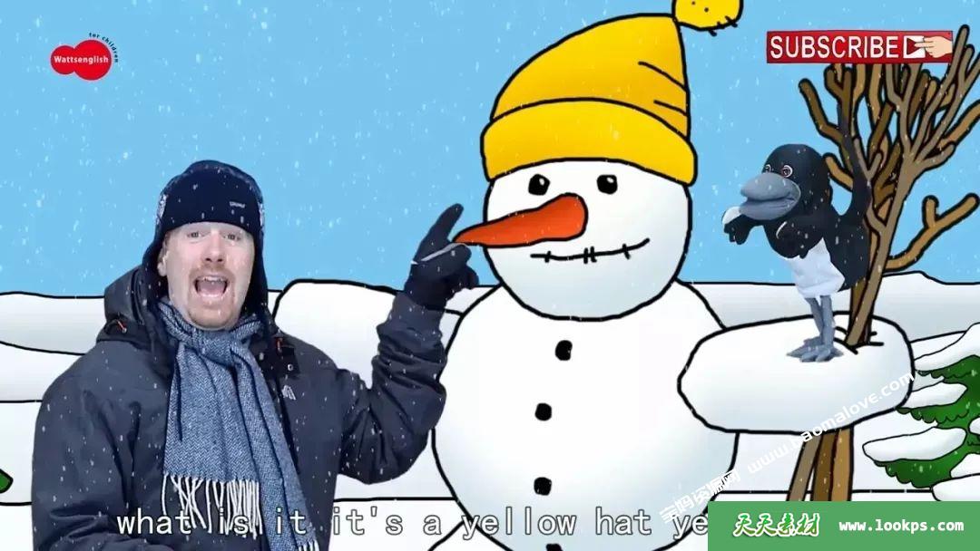 适合母语非英语国家的孩子学习。内容包含趣味游戏、歌曲童谣、食物、天气、颜色、节日、学校生活、动物等英语教学中必备的主题。比如和steve一起堆雪人:
