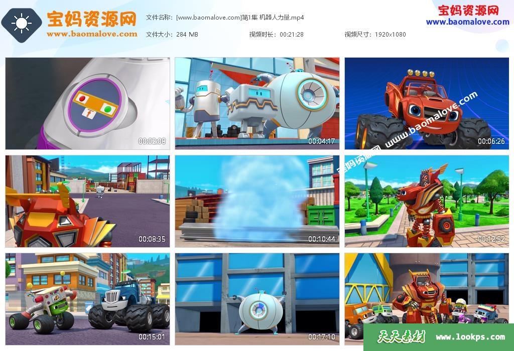 天天资源网收录的《旋风战车队》Blaze and the Monster Machines中文版第4季全部20集,国语发音,无字幕;每集大小约280M,总大小5.65G,单集播放时长约23分钟,1080P高清MP4格式,可以在电视机或电脑、平板、IPAD、早教机、手机等各种设备播放,提供百度云网盘下载!
