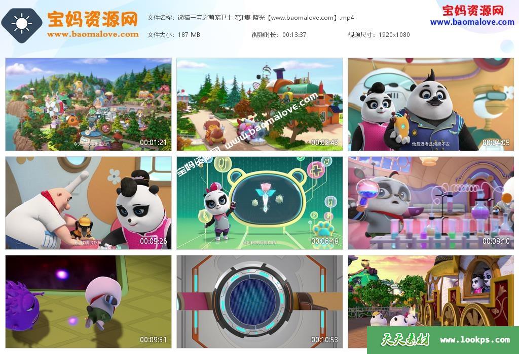 天天网收录的《熊猫三宝之萌宠卫士》全部26集,国语发音内置中文字幕;每集大小约160M,总大小4.39G,单集播放时长约7分钟,1080P高清MP4格式,可以在电视机或电脑、平板、IPAD、手机等各种设备播放!
