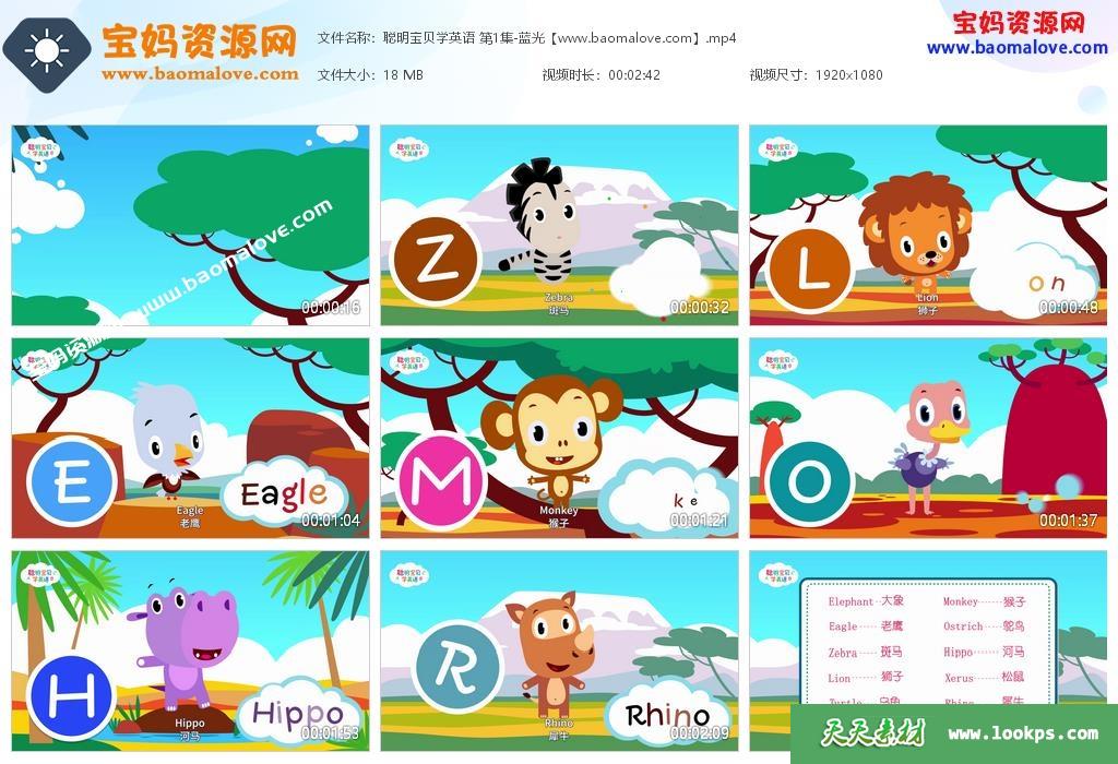 本站收录包含《聪明宝贝学英语》全部66集版本,英语发音,中英文字幕;每集大小约30M,总大小1.31G,单集播放时长约3分钟,1080P高清MP4格式,方便在电视机或电脑、平板、IPAD、手机等各种设备播放,提供百度网盘下载。