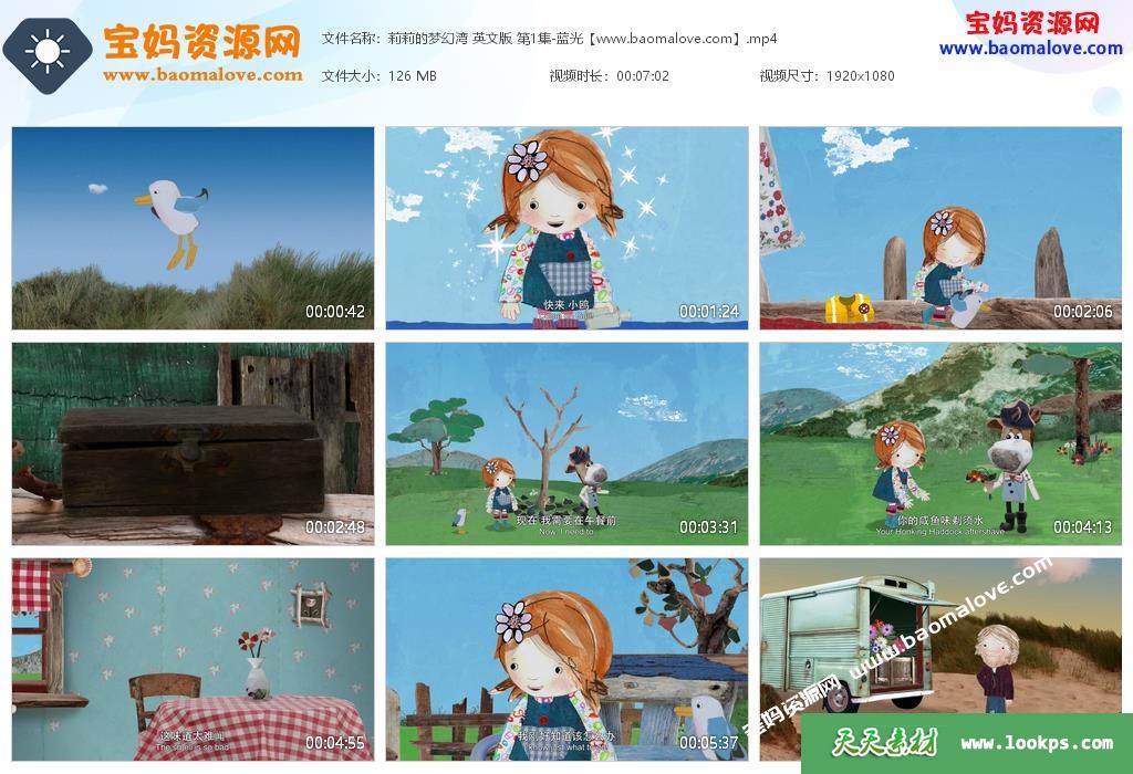 《Lily’s Driftwood Bay》莉莉的梦幻湾英文版第一季全部52集,英文版配有中文与英文字幕,词汇简单、语速较慢,适合作为宝宝大英语启蒙动画;每集大小约75M,总大小7.33G,单集播放时长约7分钟,1080P高清MP4格式,方便在电视机或电脑、平板、IPAD、手机等各种设备播放!