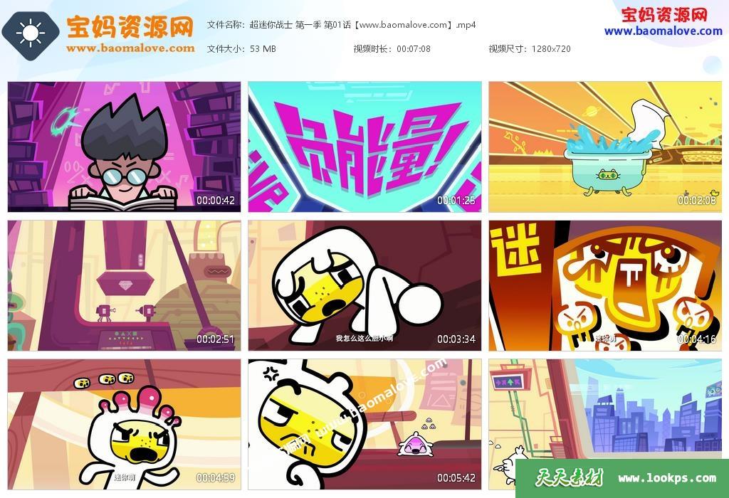 天天资源网收录的《超迷你战士》第一季全部52集视频下载,国语发音内置中文字幕;每集大小约60M,总大小2.78G,单集播放时长约7分钟,720P高清MP4格式,可以在电视机或电脑、平板、IPAD、手机等各种设备播放,提供百度云网盘下载。