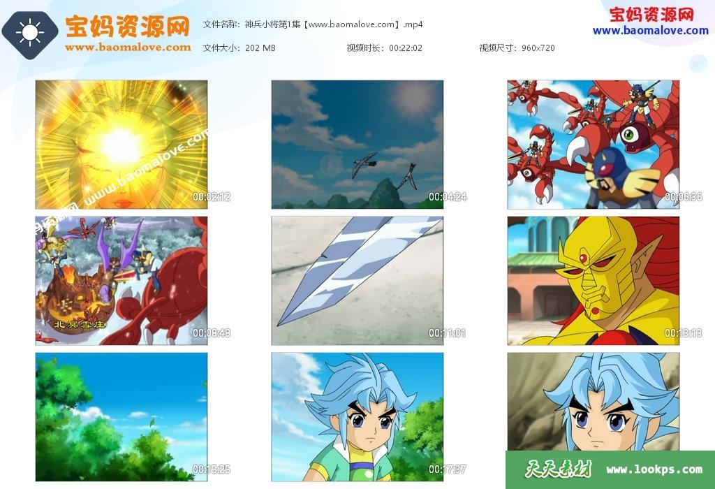 天天资源网收录的《神兵小将》第一季全部52集视频下载,国语发音;每集大小约170M,总大小9.65G,单集播放时长约22分钟,720P高清MP4格式,可以在电视机或电脑、平板、IPAD、手机等各种设备播放,提供百度云网盘下载。