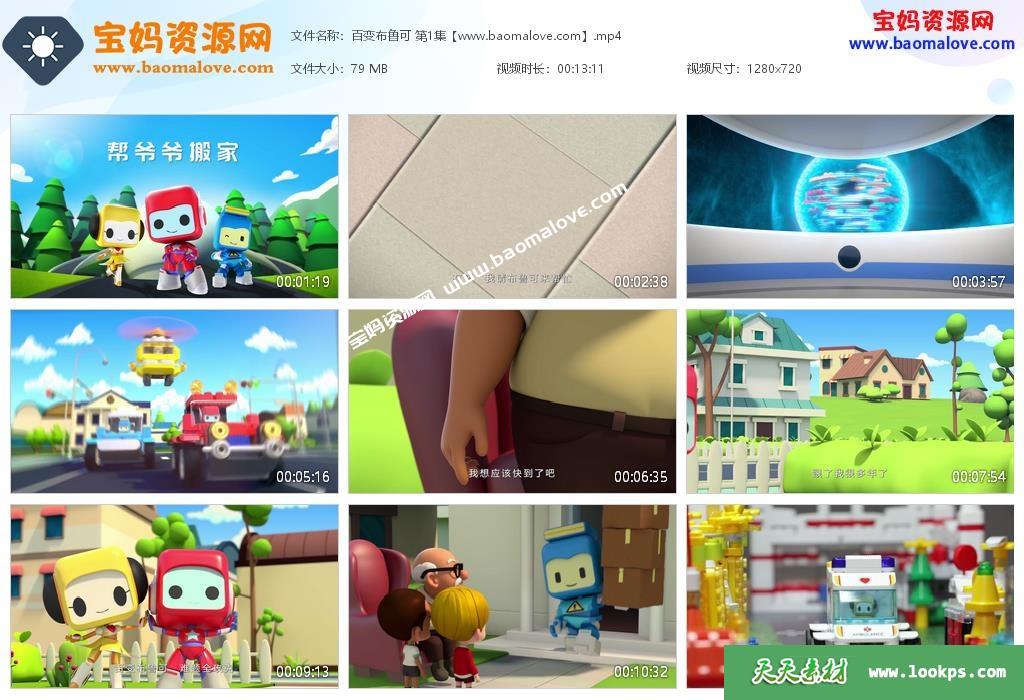 本资源是《百变布鲁可》第一季全20集的视频下载,动画每集时长13分钟左右,资源总大小1.48G,mp4高清720p分辨率,国语发音,中文字幕,适合2-6岁的小朋友观看。