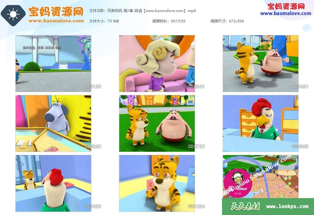 本站收录的无敌优优全部100集,国语发音,无字幕;每集大小约70M,总大小7.37G,单集播放时长约15分钟,480P高清MP4格式,可以在电视机或电脑、平板、IPAD、手机等各种设备播放,百度云网盘下载。
