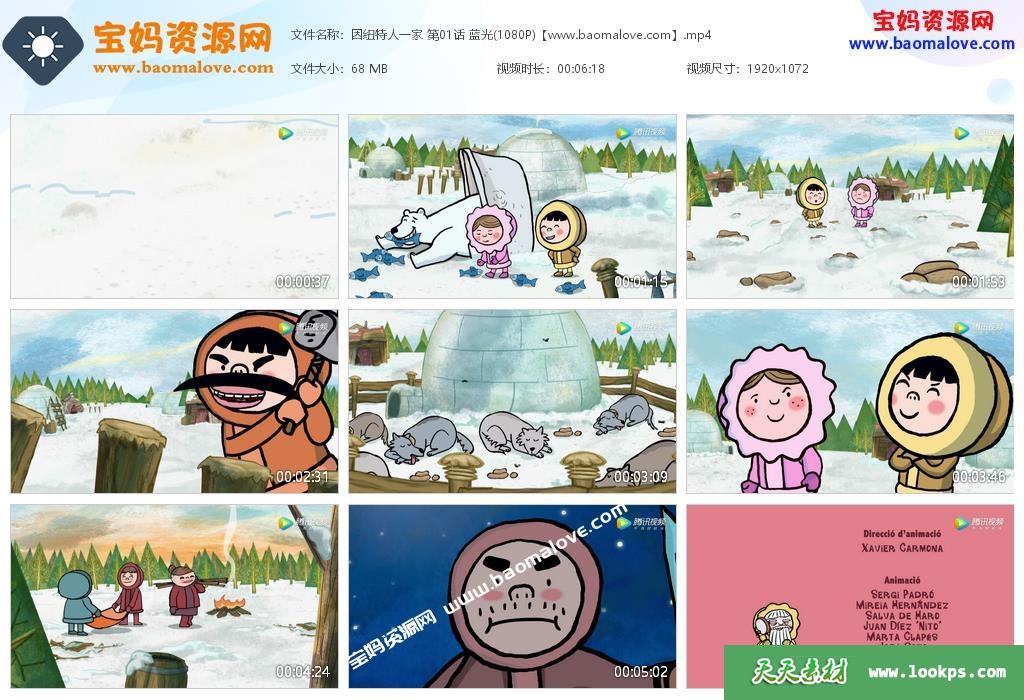 天天资源网收录的《因纽特人一家》Horaci the Inuit中文版 全部35集,国语发音内置无字幕;每集大小约65M,总大小2.20G,单集播放时长约6分钟,1080P高清MP4格式,可以在电视机或电脑、平板、IPAD、手机等各种设备播放!