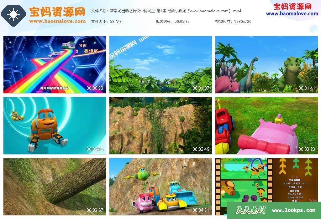 儿童动画网收录的《帮帮龙出动之传说中的龙王》全部16集,国语发音内置中文字幕;每集大小约55M,总大小832M,单集播放时长约6分钟,720P高清MP4格式,可以在电视机或电脑、平板、IPAD、手机等各种设备播放,提供百度云网盘下载!