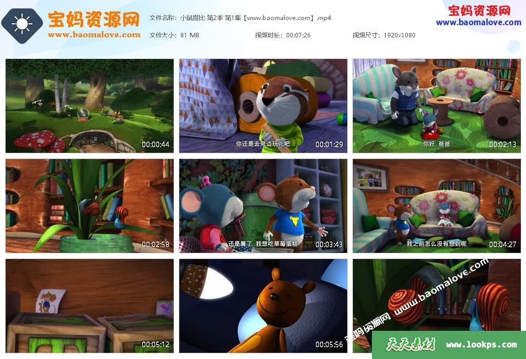 天天资源网收录的《小鼠提比》Tip The Mouse中文版 第二季全部26集,国语发音,中文字幕;每集大小约100M,总大小3.11G,单集播放时长约8分钟,1080P高清MP4格式,可以在电视机或电脑、平板、IPAD、手机等各种设备播放,提供百度云网盘下载!