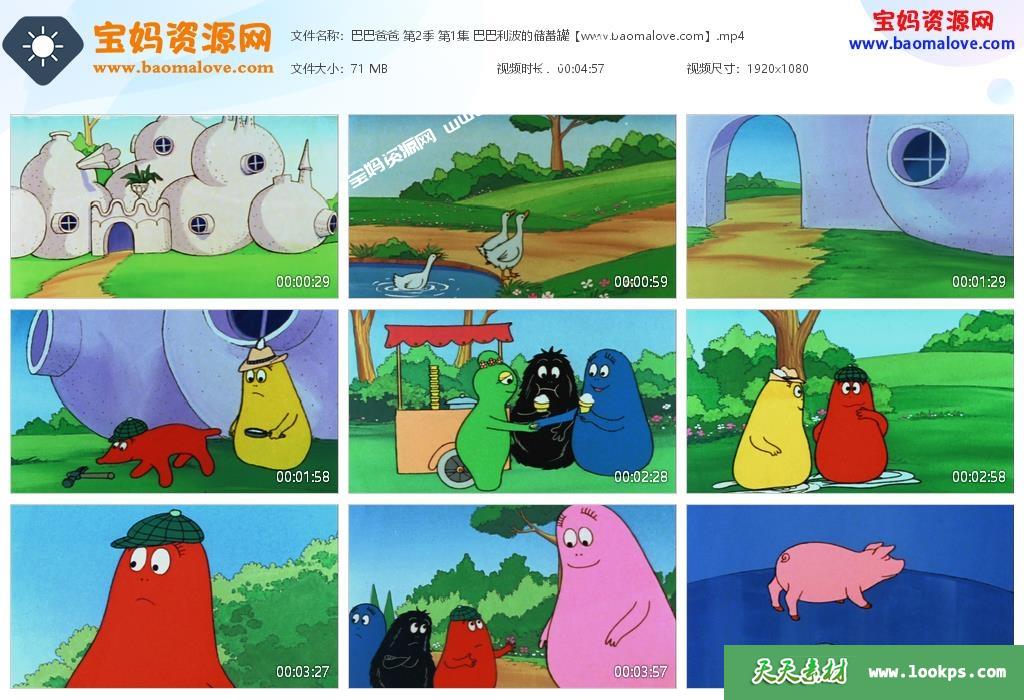 《巴巴爸爸》Les Barbapapa中文版 第二季 全部55集,国语发音,无字幕,每集大小约85M,总大小4.13G,播放时长约5分钟,1080P高清MP4格式,可以下载后使用电视机或电脑、平板、IPAD、手机等移动设备播放,提供百度云网盘下载!