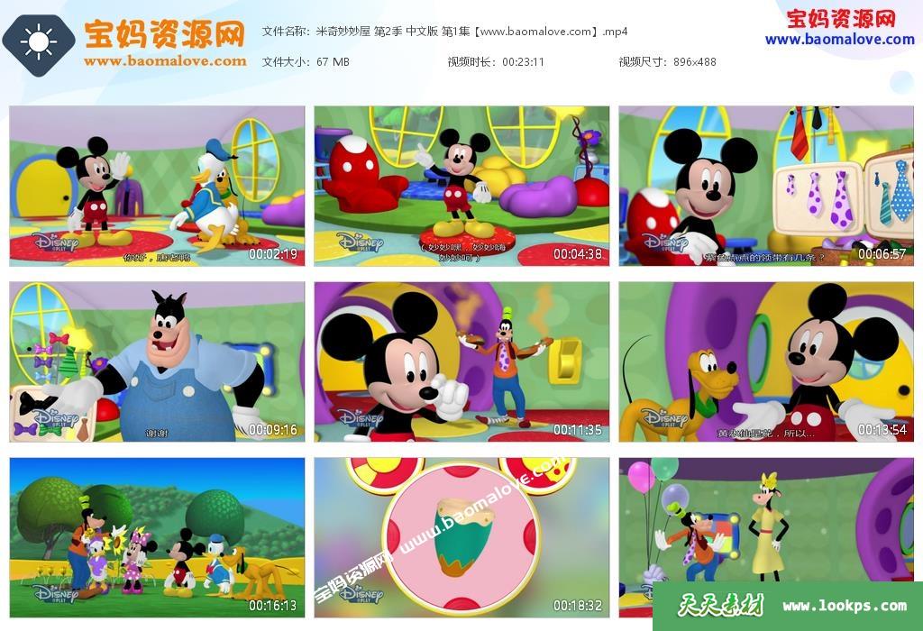 本资源是《米奇妙妙屋》Mickey Mouse Clubhouse中文版 第2~4季 全部96集的视频下载,第二季 39集,第三季35集,第四季22集,国语发音,中文字幕,每集大小约80M,总大小7.68G,播放时长约23分钟,488P高清MP4格式,可以下载后使用电视机或电脑、平板、IPAD、手机等移动设备播放,提供百度云网盘下载!