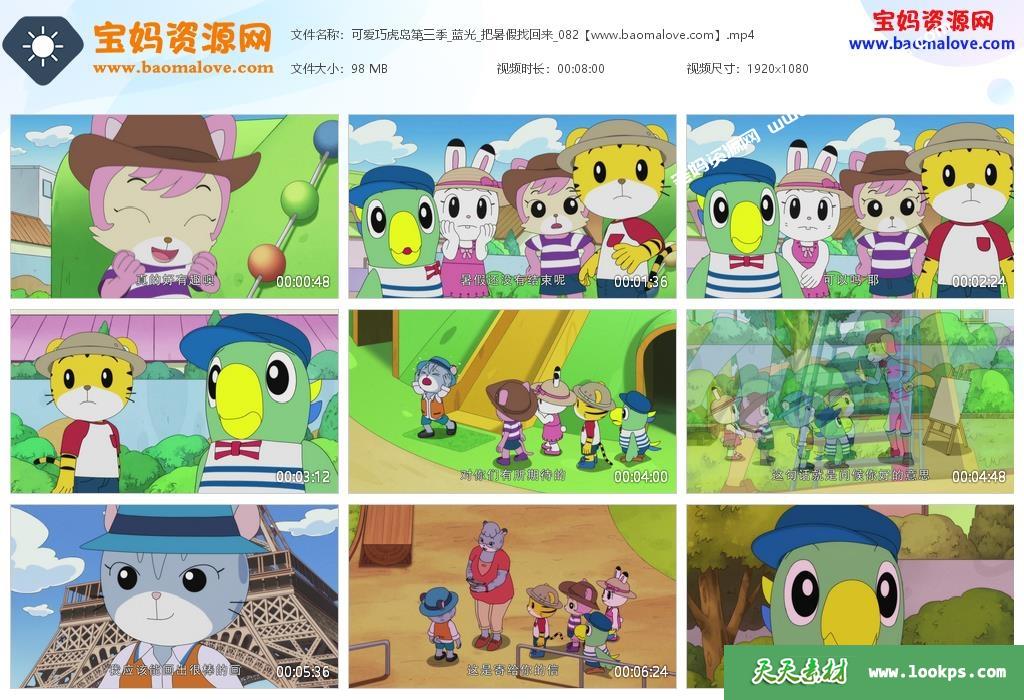 天天资源网收录的《可爱巧虎岛》第三季 全部100集,国语发音内置中文字幕;每集大小约100M,总大小9.39G,单集播放时长约10分钟,1080P高清MP4格式,可以在电视机或电脑、平板、IPAD、早教机、手机等各种设备播放,提供百度云网盘下载。