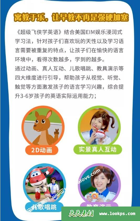 天天资源网收录的《超级飞侠学英语》全部36集,英语发音内置英文字幕;H265编码,每集大小约90M,总大小2.78G,单集播放时长约10分钟,1080P高清MP4格式,可以在电视机或电脑、平板、IPAD、早教机、手机等各种设备播放,提供百度云网盘下载。