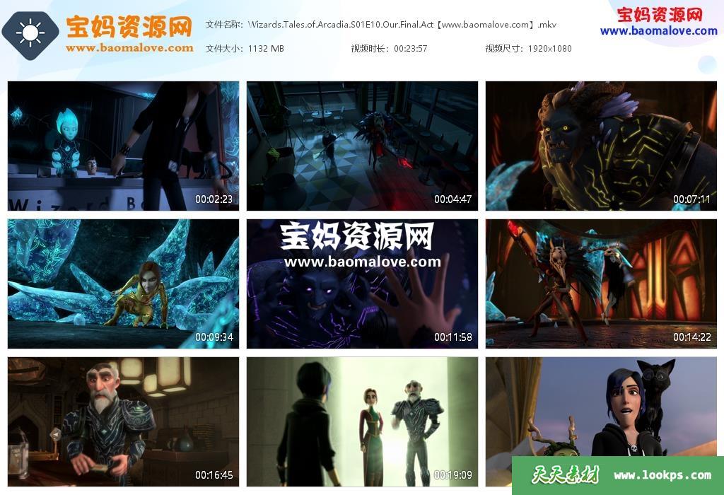 天天资源网收录的《Wizards: Tales of Arcadia》魔法大师:世外桃源的传说英文版 第一季 全集10集,英语发音,内置英文字幕(内置多国语言字幕,如中文,法文,俄文,葡萄牙文,阿拉伯文,希腊语,越南文,泰文等等…可以下载后使用播放器选择字幕或者关闭字幕);每集大小约960M,总大小9.6G,单集播放时长约24分钟,1080P高清MKV格式,可以在电视机或电脑、平板、IPAD、早教机、手机等各种设备播放,提供百度云网盘下载。