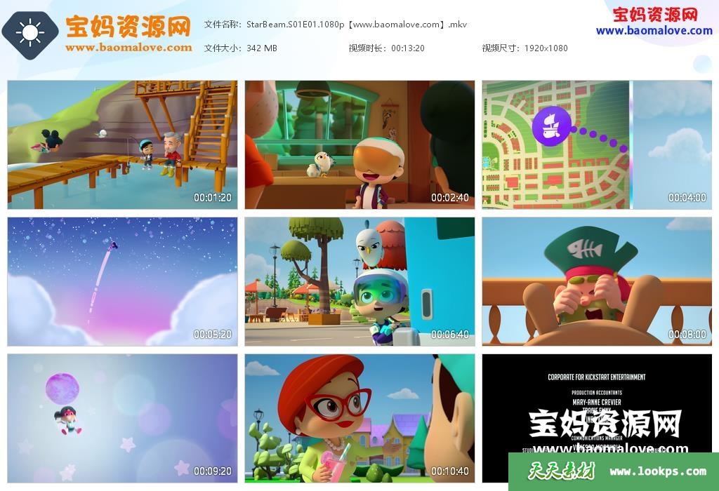 天天资源网收录的《StarBeam》星星光束英文版 第一季 全集8集,英语发音,内置英文字幕(内置多国语言字幕,如中文,法文,日文,韩文,俄文,葡萄牙文,阿拉伯文,希腊文,越南文,泰文等等字幕…可以下载后使用播放器选择字幕或者关闭字幕);每集大小约300M,总大小2.7G,单集播放时长约13分钟,1080P高清MKV格式,可以在电视机或电脑、平板、IPAD、早教机、手机等各种设备播放,提供百度云网盘下载。
