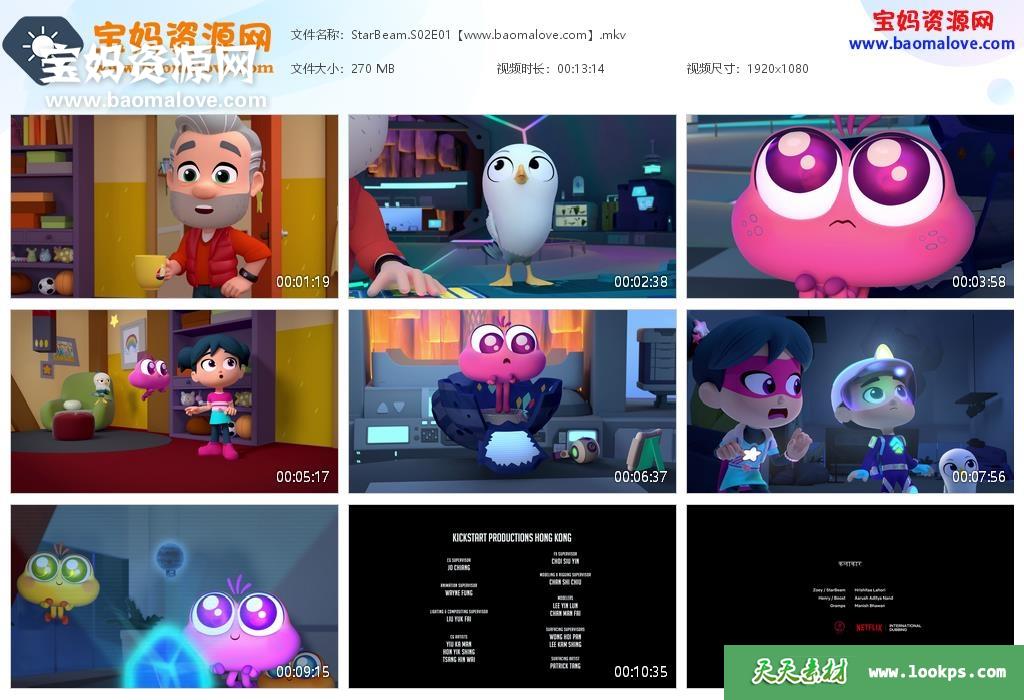 天天资源网收录的《StarBeam》星星光束英文版 第二季 全集8集,英语发音,内置英文字幕(内置多国语言字幕,如中文,法文,日文,韩文,俄文,葡萄牙文,阿拉伯文,希腊文,越南文,泰文等等字幕…可以下载后使用播放器选择字幕或者关闭字幕);每集大小约305M,总大小2.62G,单集播放时长约13分钟,1080P高清MKV格式,可以在电视机或电脑、平板、IPAD、早教机、手机等各种设备播放,提供百度云网盘下载。