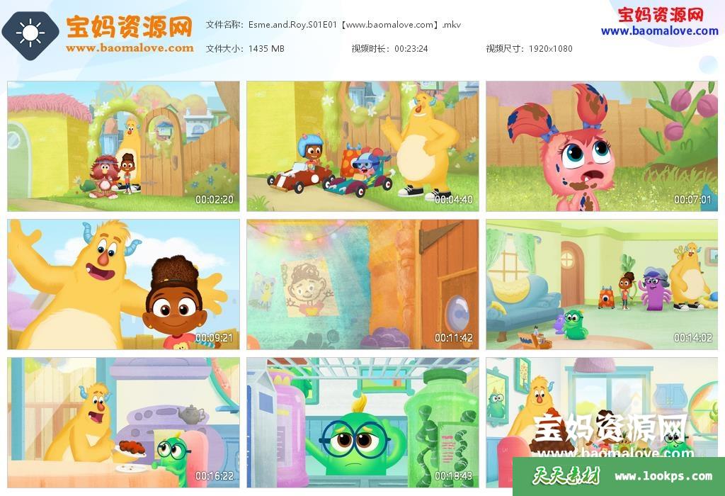 天天资源网收录的《Esme&Roy》埃斯梅和罗伊英文版 第一季 全集52集,英语发音,内置英文字幕和西班牙文(字幕可切换或关闭);26个视频,一个视频2集,共计52集,每个视频大小约1.5G,总大小35.5G,单集播放时长约24分钟,1080P高清MKV格式,可以在电视机或电脑、平板、IPAD、早教机、手机等各种设备播放,提供百度云网盘下载。