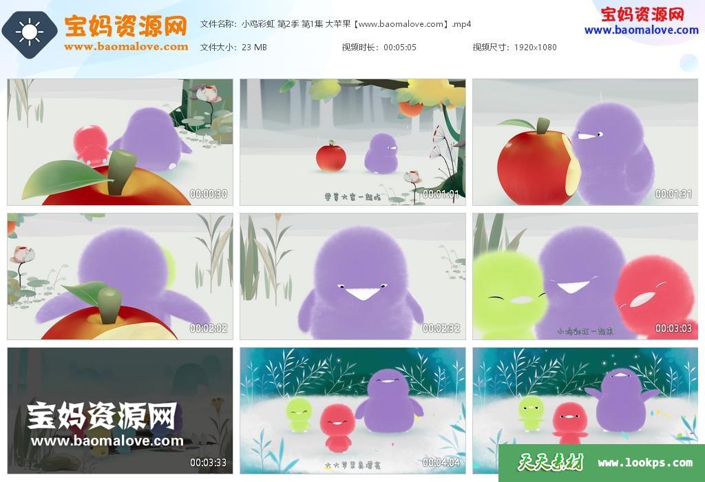天天资源网收录的动画片《小鸡彩虹》Rainbow Chicks中文版 第二季 全部13集,国语发音,中文字幕;每集大小约25M,总大小323M,单集播放时长约6分钟,1080P高清MP4格式,可以在电视机或电脑、平板、IPAD、早教机、手机等各种设备播放,提供百度云网盘下载。