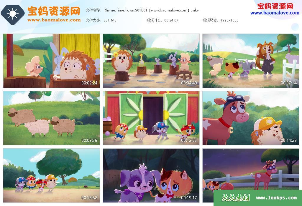天天资源网收录的动画片《Rhyme Time Town》儿歌童谣城英文版 第一季 全集6集,英语发音,内置英文字幕(内置多国语言字幕,如中文,越南文,法文,泰文,俄文,韩文,荷兰文,西班牙文,意大利文,德文等多国语言字幕…可以下载后使用播放器选择字幕或者关闭字幕);每集大小820M,总大小5.06G,单集播放时长约24分钟,1080P高清MKV格式,可以在电视机或电脑、平板、IPAD、早教机、手机等各种设备播放,提供百度云网盘下载。