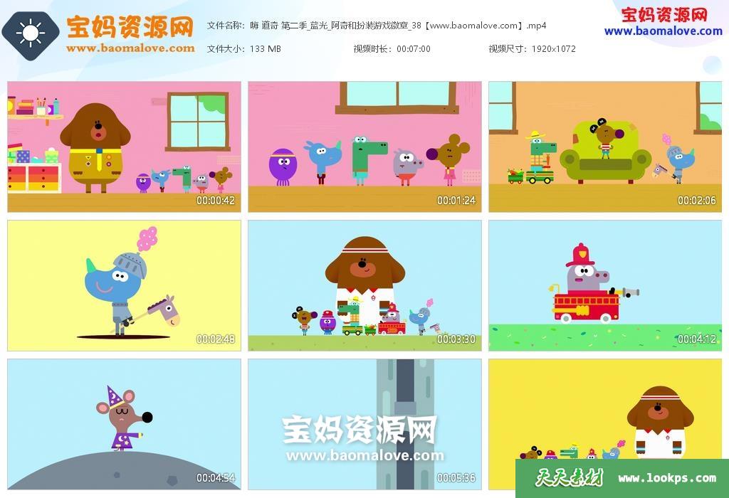 天天资源网收录的动画片《嗨 道奇》Hey Duggee中文版 第二季 全部52集,国语发音,无字幕;每集大小约30M,总大小1.67G,单集播放时长约7分钟,1080P高清MP4格式,可以在电视机或电脑、平板、IPAD、早教机、手机等各种设备播放,提供百度云网盘下载。