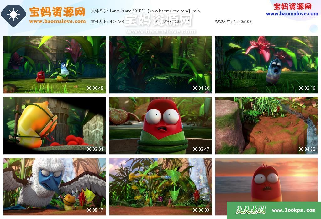 天天资源网收录的动画片《Larva Island》臭屁虫之冒险岛英文版 第一季 全集13集,英语发音,内置英文字幕,可以下载后使用播放器选择字幕或者关闭字幕(字幕的字体大小颜色也可以自己设置);每集大小约360M,总大小4.79G,单集播放时长约23分钟,1080P高清MKV格式,可以在电视机或电脑、平板、IPAD、早教机、手机等各种设备播放,提供百度云网盘下载。