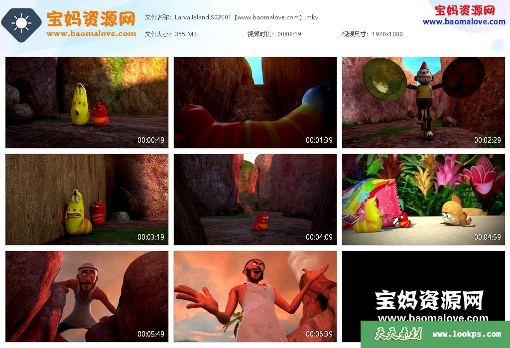 天天资源网收录的动画片《Larva Island》臭屁虫之冒险岛英文版 第二季 全集13集,英语发音,内置英文字幕,可以下载后使用播放器选择字幕或者关闭字幕(字幕的字体大小颜色也可以自己设置);每集大小约320M,总大小4.66G,单集播放时长约23分钟,1080P高清MKV格式,可以在电视机或电脑、平板、IPAD、早教机、手机等各种设备播放,提供百度云网盘下载。