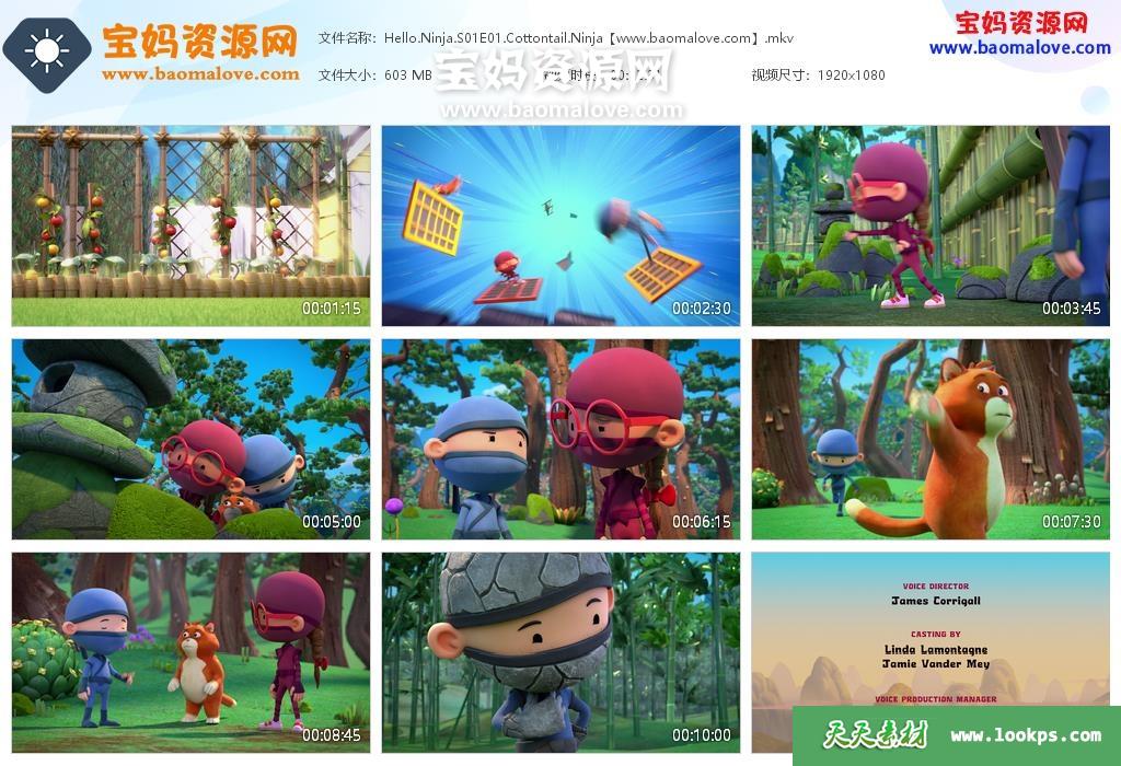 天天资源网收录的动画片《Hello Ninja》哈啰忍者英文版 第一季 全集10集,英语发音,内置英文字幕(内置多国语言字幕,如越南文,法文,泰文,俄文,韩文,荷兰文,西班牙文,意大利文,德文等多国语言字幕…可以下载后使用播放器选择字幕或者关闭字幕);每集大小500M,总大小5.42G,单集播放时长约13分钟,1080P高清MKV格式,可以在电视机或电脑、平板、IPAD、早教机、手机等各种设备播放,提供百度云网盘下载。