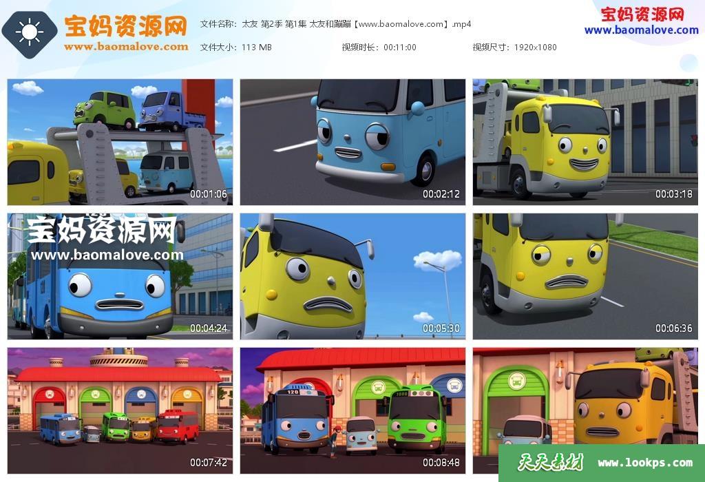 天天资源网收录的动画片《小公交车太友》Tayo the little bus中文版 第一二季 全部52集,国语发音,无字幕;每集大小约110M,总大小5.48G,单集播放时长约11分钟,第一季26集、第二季26集,共52集,1080P高清MP4格式,可以在电视机或电脑、平板、IPAD、早教机、手机等各种设备播放,提供百度云网盘下载。