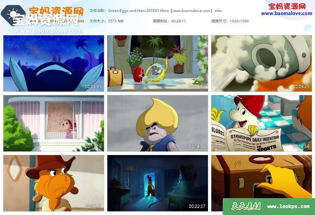天天资源网收录的动画片《Green Eggs and Ham》绿鸡蛋和火腿英文版 第一季 全集13集,英语发音,内置英文字幕(内置多国语言字幕,如中文,俄语,泰文,日文,法文,越南文,阿拉伯文,波兰文,意大利文等多国语言字幕…可以下载后使用播放器选择字幕或者关闭字幕);每集大小1.53G,总大小19.4G,单集播放时长约29分钟,1080P高清MKV格式,可以在电视机或电脑、平板、IPAD、早教机、手机等各种设备播放,提供百度云网盘下载。