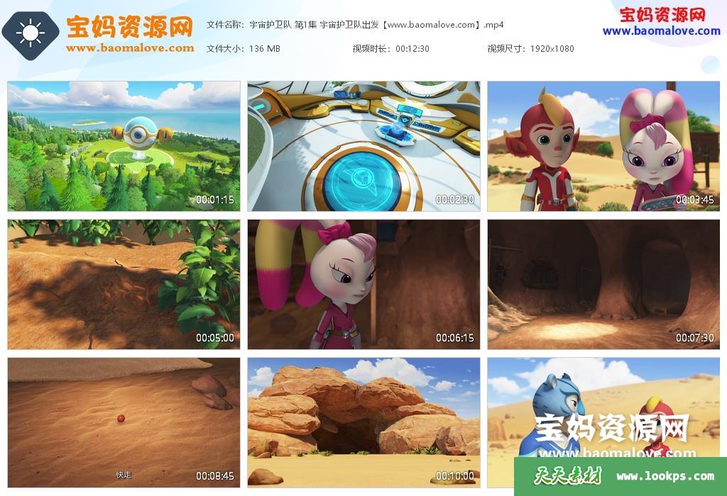 天天资源网收录的动画片《宇宙护卫队》第一季 全部52集,国语发音,中文字幕;H265编码,每集大小约110M,总大小5.95G,单集播放时长约13分钟,1080P高清MP4格式,可以在电视机或电脑、平板、IPAD、早教机、手机等各种设备播放,提供百度云网盘下载。