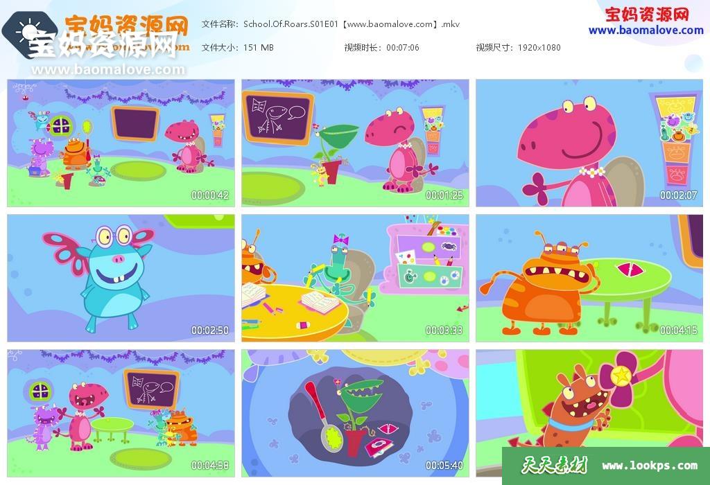 天天资源网收录的动画片《School of Roars》咆哮学校英文版 第一季 全集52集,英语发音,内置英文字幕(英文和意大利文,可以下载后使用播放器选择字幕或者关闭字幕);每集大小150M,总大小7.9G,单集播放时长约7分钟,1080P高清MKV格式,可以在电视机或电脑、平板、IPAD、早教机、手机等各种设备播放,提供百度云网盘下载。