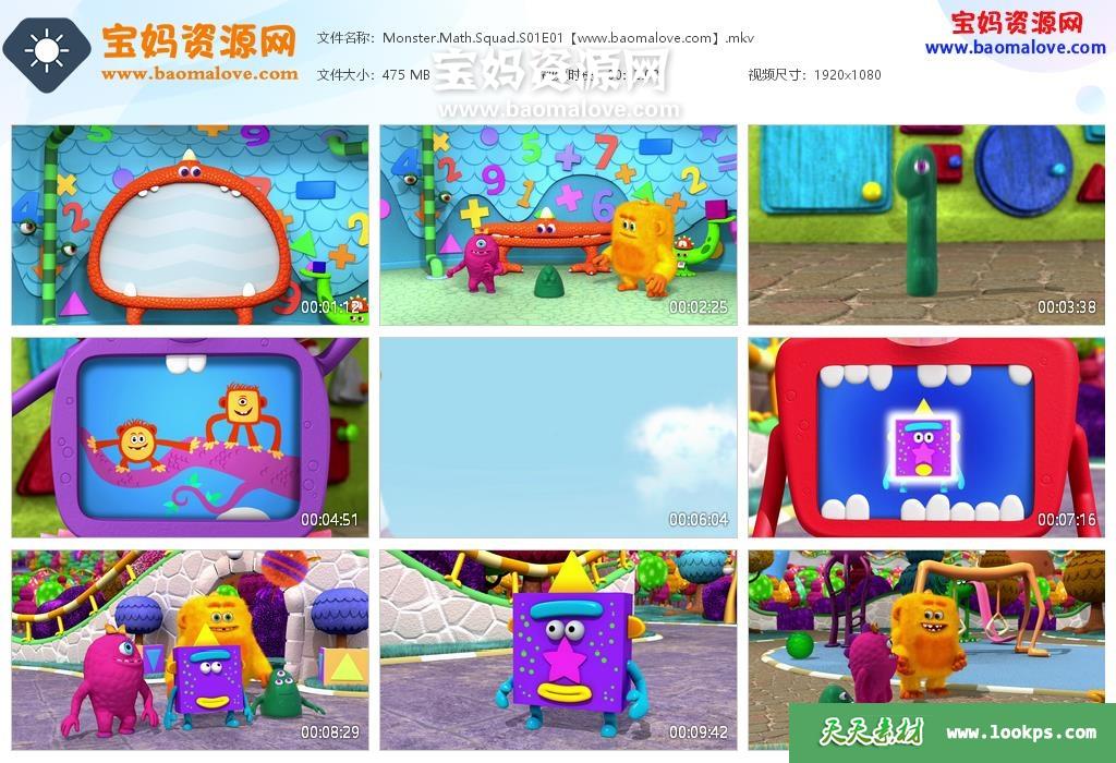 天天资源网收录的动画片《Monster Math Squad》怪物数学小分队英文版 第一季 全集30集,英语发音,内置英文字幕(可以下载后使用播放器选择字幕或者关闭字幕);每集大小约420M,总大小12.9G,单集播放时长约12分钟,1080P高清MKV格式,可以在电视机或电脑、平板、IPAD、早教机、手机等各种设备播放,提供百度网盘下载。
