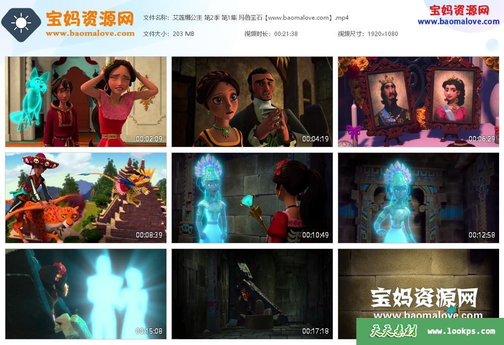 天天资源网收录的动画片《艾莲娜公主》Elena of Avalor中文版 第二季 全部25集,国语发音,无字幕;H265编码,每集大小约200M,总大小5.01G,单集播放时长约23分钟,1080P高清MP4格式,可以在电视机或电脑、平板、IPAD、早教机、手机等各种设备播放,提供百度网盘下载。
