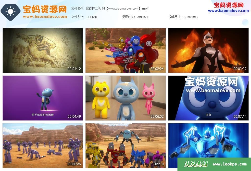 天天资源网收录的动画片《最强战士之迷你特工队》 全部52集,国语发音,中文字幕;每集大小约180M,总大小8.84G,单集播放时长约12分钟,1080P高清MP4格式,可以在电视机或电脑、平板、IPAD、早教机、手机等各种设备播放,提供百度云网盘下载。