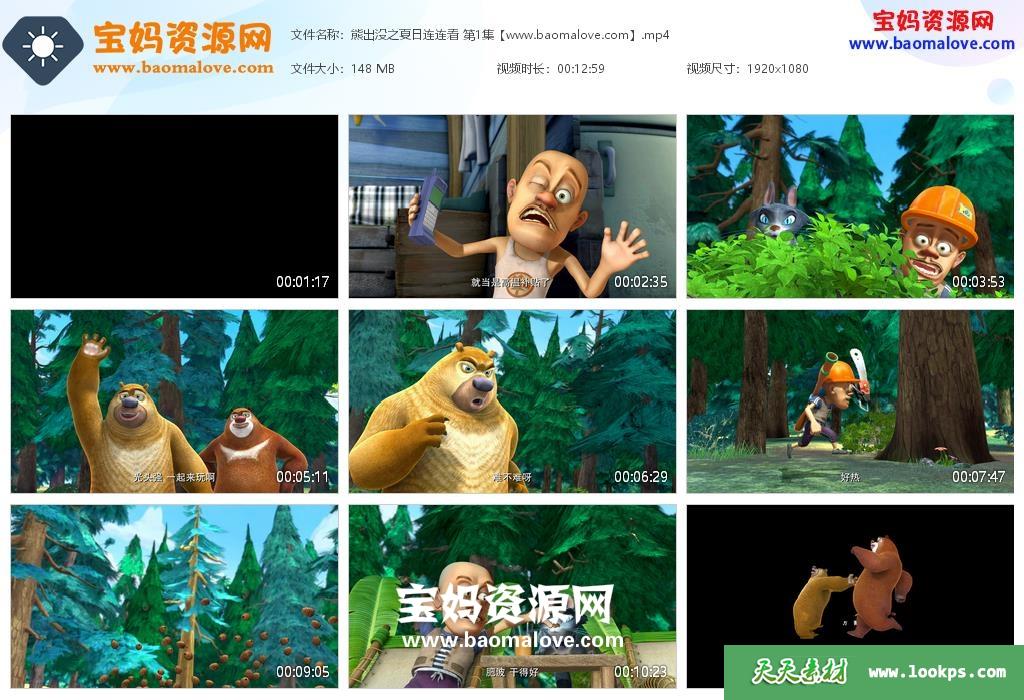 天天资源网收录的动画片《熊出没之夏日连连看》全部52集,国语发音,中文字幕;H265编码,每集大小约140M,总大小7G,单集播放时长约13分钟,1080P高清MP4格式,可以在电视机或电脑、平板、IPAD、早教机、手机等各种设备播放,提供百度云网盘下载。