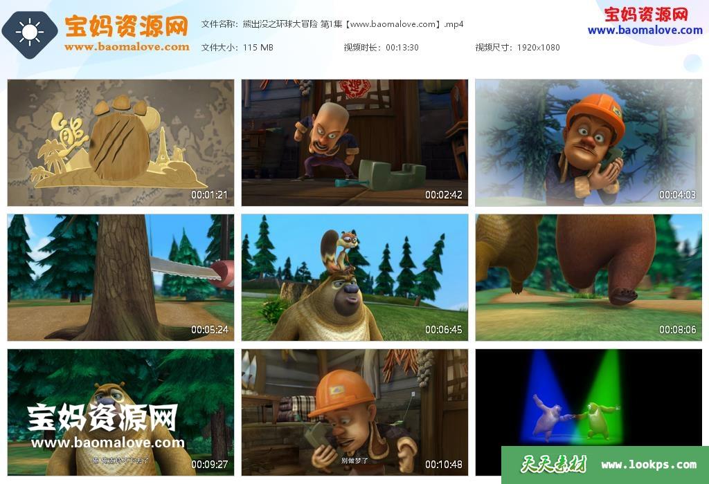 天天资源网收录的动画片《熊出没之环球大冒险》全部52集,国语发音,中文字幕;H265编码,每集大小约110M,总大小5.61G,单集播放时长约13分钟,1080P高清MP4格式,可以在电视机或电脑、平板、IPAD、早教机、手机等各种设备播放,提供百度云网盘下载。