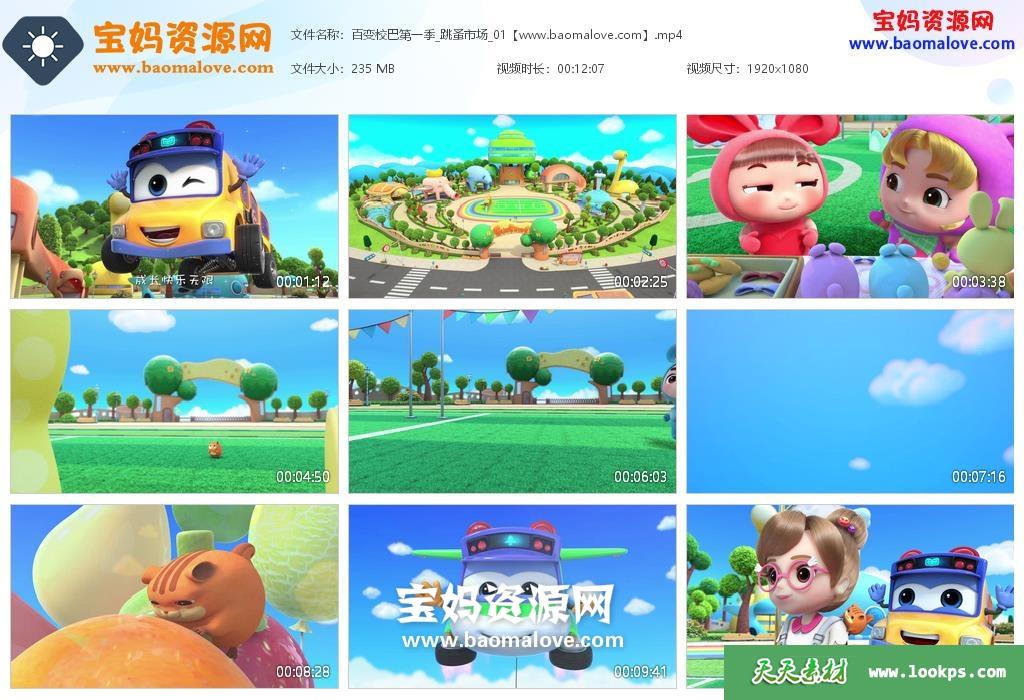 天天资源网收录的动画片《百变校巴》第一季 全部26集,国语发音,中文字幕;H264编码,每集大小约240M,总大小6.15G,单集播放时长约13分钟,1080P高清MP4格式,可以在电视机或电脑、平板、IPAD、早教机、手机等各种设备播放,提供百度云网盘下载。