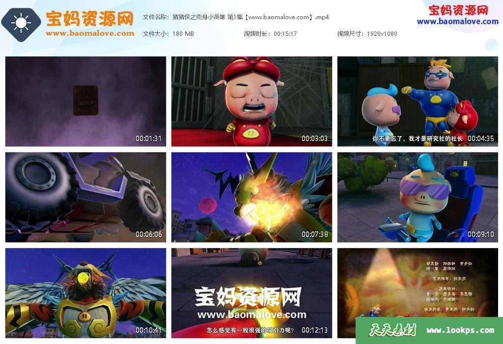 天天资源网收录的动画片猪猪侠之变身小英雄 全部52集,国语发音,中文字幕;H265编码,每集大小约170M,总大小8.66G,单集播放时长约15分钟,1080P高清MP4格式,可以在电视机或电脑、平板、IPAD、早教机、手机等各种设备播放,提供百度云网盘下载。