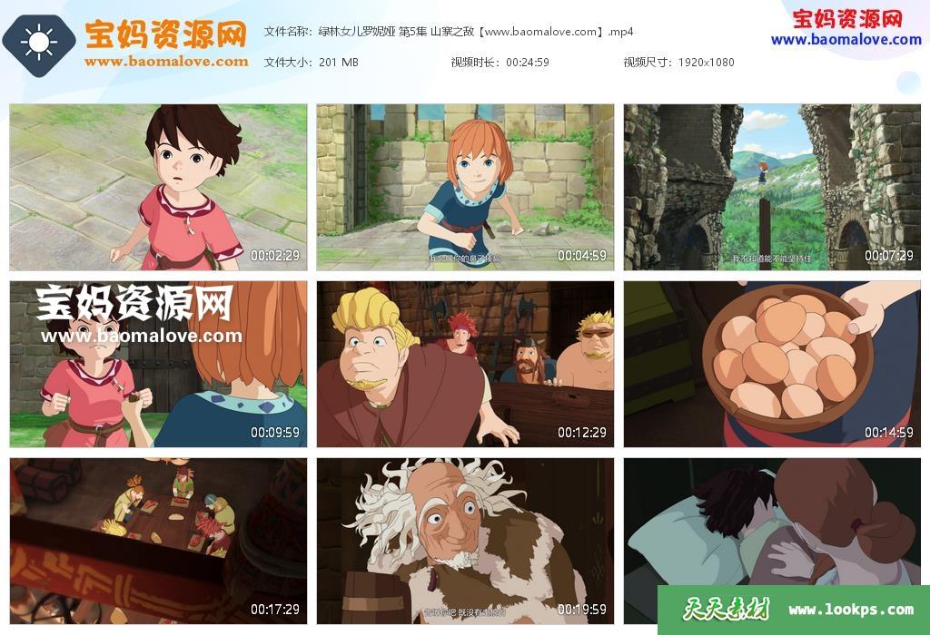 天天资源网收录的动画片《绿林女儿罗妮娅》Ronia, the Robber’s Daughter中文版 全部26集,国语发音,中文字幕;H265编码,每集大小约200M,总大小5.17G,单集播放时长约25分钟,1080P高清MP4格式,可以在电视机或电脑、平板、IPAD、早教机、手机等各种设备播放,提供百度云网盘下载。