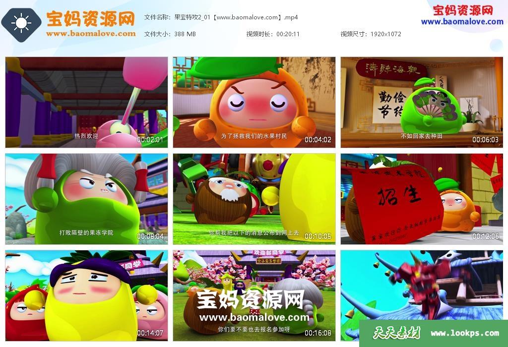 本资源收录果宝特攻第二季 全部52集视频下载;国语发音,中文字幕,每集大小约360M,总大小18.2G,单集播放时长约20分钟,1080P高清MP4格式,方便在电视机或电脑、平板、IPAD、手机等各种设备播放,提供百度云网盘下载。
