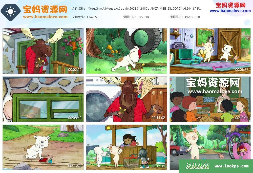 天天资源网收录的动画片《If You Give a Mouse a Cookie》如果你给老鼠吃饼干英文版 第二季 全集11集,英语发音,内置英文字幕(可以下载后使用播放器设置字幕字体大小颜色或者关闭字幕);每集大小约1G,资源总大小12.4G,单集播放时长约22分钟,1080P高清MKV格式,可以在电视机或电脑、平板、IPAD、早教机、手机等各种设备播放,提供百度网盘下载。