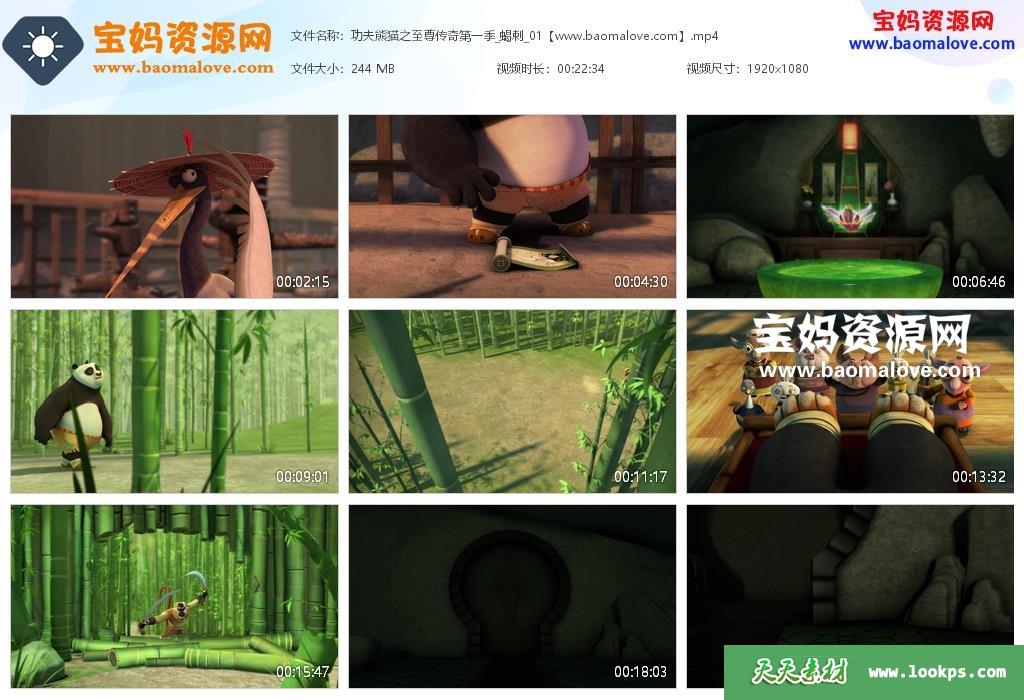 天天资源网收录的动画片《功夫熊猫之至尊传奇》 第一季 全部26集,国语发音,无字幕;每集大小约220M,总大小5.54G,单集播放时长约22分钟,1080P高清MP4格式,可以在电视机或电脑、平板、IPAD、早教机、手机等各种设备播放,提供百度云网盘下载。