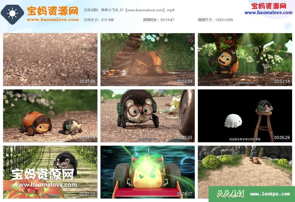 天天资源网收录的动画片《奔奔小飞车》 全部52集,国语发音,中文字幕;H264编码,每集大小约220M,总大小11.8G,单集播放时长约13分钟,1080P高清MP4格式,可以在电视机或电脑、平板、IPAD、早教机、手机等各种设备播放,提供百度云网盘下载。