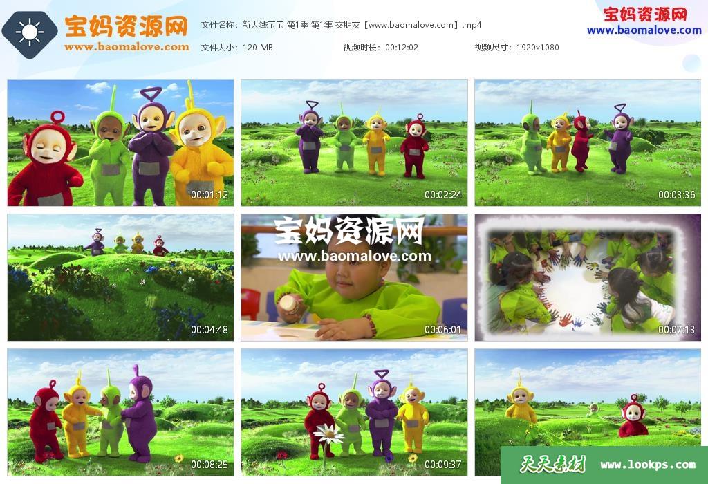 天天资源网收录的动画片《新天线宝宝》Teletubbies New Series中文版 第一季 全部60集,国语发音,无字幕;H265编码,每集大小约120M,总大小6.97G,单集播放时长约12分钟,1080P高清MP4格式,可以在电视机或电脑、平板、IPAD、早教机、手机等各种设备播放,提供百度云网盘下载。