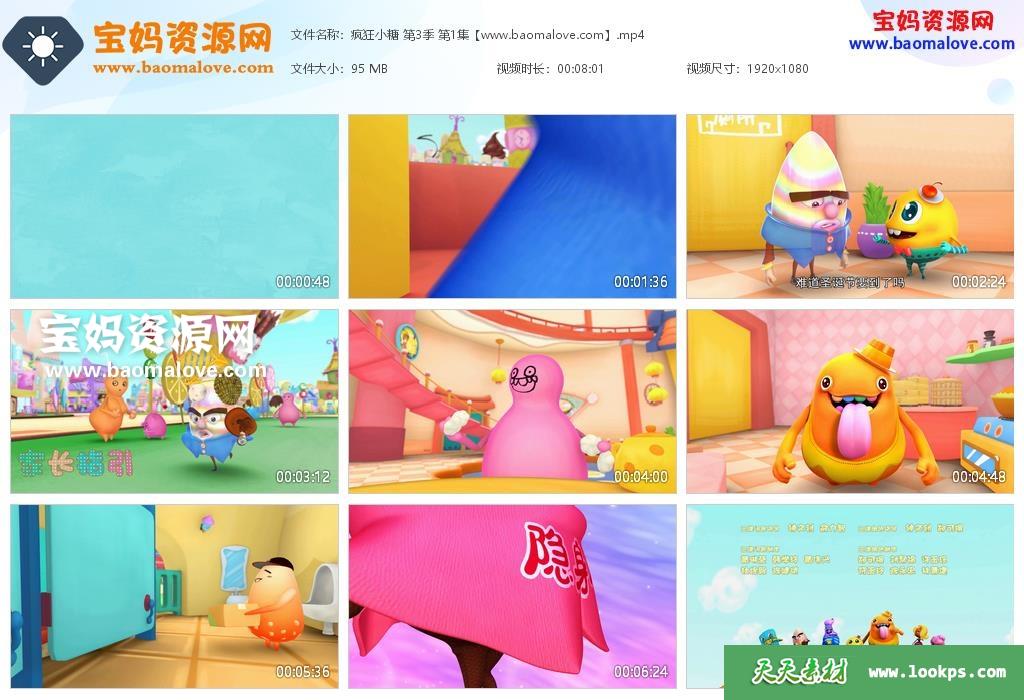天天资源网收录的动画片《疯狂小糖》第三季 全部52集,国语发音,中文字幕;每集大小约95M,总大小5.09G,单集播放时长约8分钟,1080P高清MP4格式,可以在电视机或电脑、平板、IPAD、早教机、手机等各种设备播放,提供百度云网盘下载。