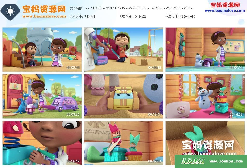 天天资源网收录的动画片《Doc McStuffins》小医师大玩偶英文版 第二季全集68集,英语发音,内置英文字幕(可以下载后使用播放器设置字幕字体大小颜色或者关闭字幕);每集大小约380M,资源总大小26.1G,单集播放时长约12分钟,1080P高清MKV格式,可以在电视机或电脑、平板、IPAD、早教机、手机等各种设备播放,提供百度网盘下载。