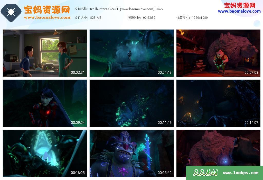 天天资源网收录的动画片《Trollhunters》巨怪猎人英文版 第二季 全部13集,英语发音,内置英文字幕(内置多国语言字幕,如德文,法文,荷兰文,西班牙文等,可以下载后使用播放器设置字幕字体大小颜色或者切换关闭字幕);每集大小约820M,资源总大小11.1G,单集播放时长约24分钟,1080P高清MKV格式,可以在电视机或电脑、平板、IPAD、早教机、手机等各种设备播放,提供百度网盘下载。