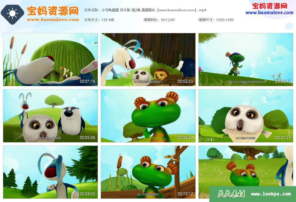 天天资源网收录的动画片《Lulu Zipadoo》小乌龟露露英文版 全集104集,英语发音,内置中文字幕;每集大小约130M,总大小13.1G,单集播放时长约13分钟,1080P高清MP4格式,可以在电视机或电脑、平板、IPAD、早教机、手机等各种设备播放,提供百度云网盘下载。