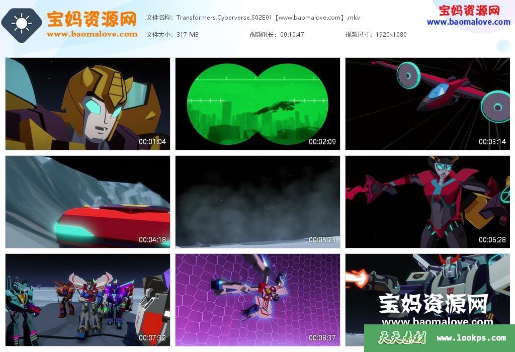 天天资源网收录的动画片《Transformers: Cyberverse》变形金刚之塞伯志英文版 第二季 全部18集,英语发音,内置英文字幕(可以下载后使用播放器设置字幕字体大小颜色或者切换关闭字幕);每集大小约330M,资源总大小6.58G,单集播放时长约11分钟,1080P高清MKV格式,可以在电视机或电脑、平板、IPAD、早教机、手机等各种设备播放,提供百度网盘下载。